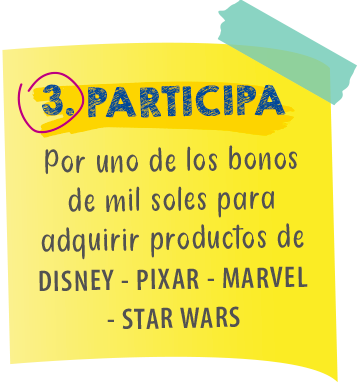 Promoción válida a nivel nacional del 01/02/2026 al 15/03/2026, exclusiva para personas residentes en Perú mayores de 18 años. Compra productos escolares licenciados desde S/ 24.90 en una sola boleta o factura en comercios autorizados y registra tu comprobante en www.regresoaclasespromo.com. Cada comprobante válido equivale a una opción para el sorteo. Premio: 10 bonos escolares de S/ 1,000 cada uno, entregados en tarjetas Pluxee. No transferible ni canjeable por dinero en efectivo. Uso sujeto a términos y condiciones de Pluxee. Sorteo: 16/03/2026. Ganadores Lima: retiro en oficina. Ganadores provincia: envío vía courier. Aplican restricciones.